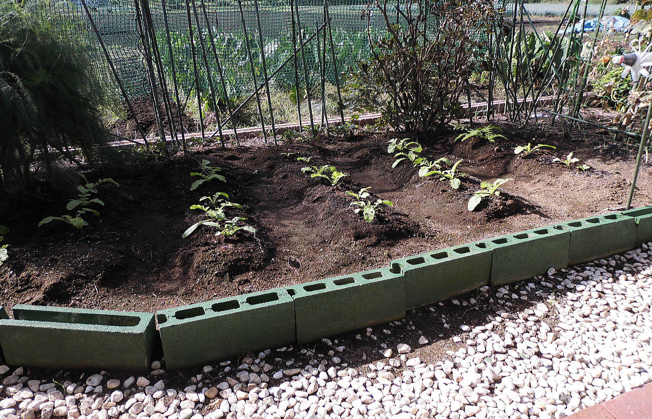畝の上に野菜支柱を組んだ 苗を植えるのは4月後半になるだろう 2月24日 ジャガイモ1キロ 9個を植えた 3個植え畝が2個所 小さい残りの3個は 庭の片隅に植えた 1年前は1キロで20K以上取れたから 1キロ植えとけば十分だろう 切らずに1個ずつ9か所に植えた 100日後収穫 ジャガイモに土を被せマルチを貼った 芽が出て尖がり帽子になったら そこだけ切り開く 2~3週間後だろう 土留めで置いたピンクの重量ブロックの内側に 沖縄の島ラッキョウを植えた 普通のラッキョウは 9月頃植え 6月頃収穫する 島ラッキョウは 今種球根が売っているから 植えても大丈夫だろう 本体商品も 今売っているから 収獲も来年の今頃だと推測 主にブロックの内側に 計160本植えた ラッキョウは美味しくて大好きだ 来年が楽しみ |