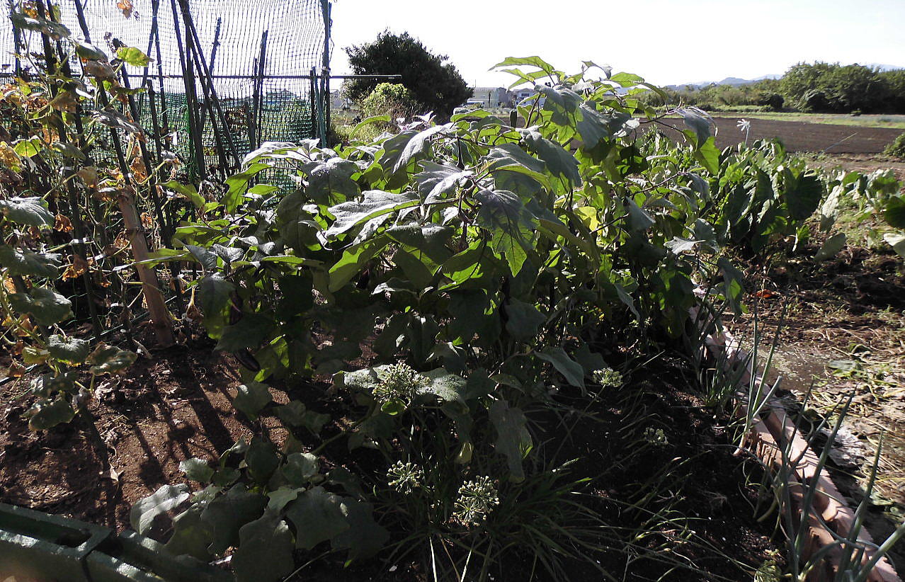 沢庵用ダイコン 1回目種まき ダンゴムシに食べられて全滅 薬を撒いた後 再度種まきした 1本の長ナスの苗 家庭菜園の言葉で「ナス地獄」と言う言葉がある 取れ過ぎて消費出来ない状態の事 それに近いほど獲れている |