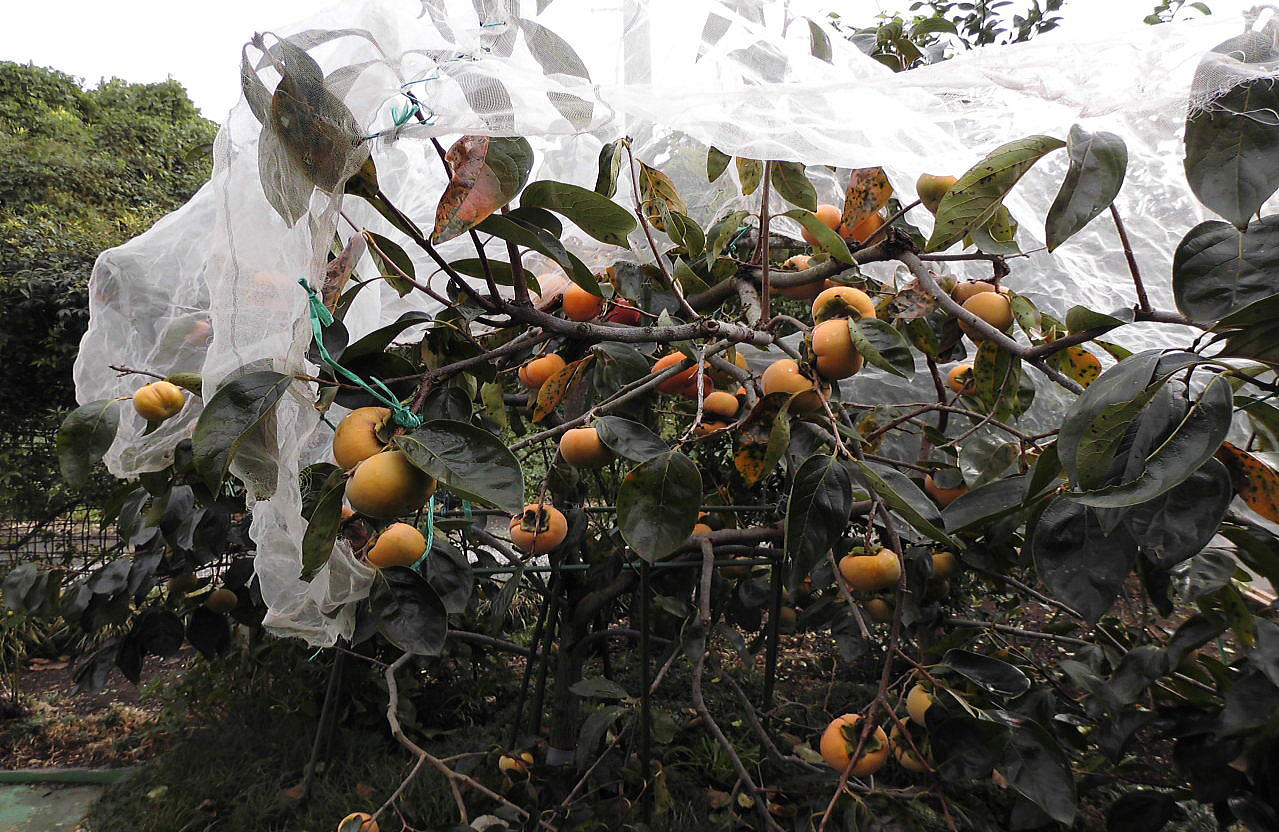 狭い庭なのに 富有柿4年物 昨年植え 今年10個程度成っている 紅めな感じを2個食べる まぁまぁ 完熟は もう少し後 |