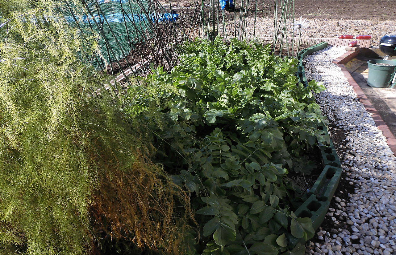 初めての沢庵作り 借りている市民農園で 大根十数本栽培し 1本1本大きいのから抜き食べた 残り5本になった時 沢庵作りを思い立ち 庭で1週間ほど陽干し 最後の2日は半割にし さらに乾燥 ただこれだけでは量が不足で メルカリで 九州から1000円弱で9本購入(十分乾燥済みの物) ひろちゃん農園の沢庵作り を参考に 初めての沢庵作りを開始した 黒バケツにビニール袋2枚重ね 米糠 砂糖 塩 昆布 ゆず 柿ジャム 酢 焼酎 沢庵漬けの素「醸源じょうげん」 このじょうげんが 味を決めるのにとても重要だそうだ 大根を除く他の材料を混ぜ バケツの底に 糠 大根 糠 大根 糠と入れ 最後に 一緒に干した葉っぱを乗せ 重し バケツの大きさの割には重めの30~40キロくらいを乗せた 北側の陽が当たらず 風通しの良い通路に置いた 4~5日から食べ始められるらしいが もう少しおいて食べてみようと思う 自分は沢庵は そんなに好きではないが 頑張って食べようと思う 来年は大根の種を多めに撒いて 沢庵造りを再挑戦するつもりだ 南側の庭の一角 一日中たっぷりの陽を浴びて サニーレタス 玉ねぎ スナップエンドウ カツオ菜も すくすくと育っている |